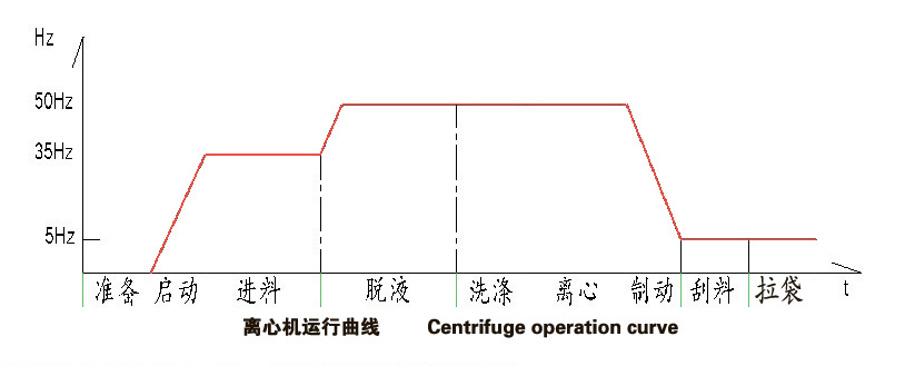 離心機運行由PLC控制,系統(tǒng)按預設運行程序自動運行。不同的機型有相應的運行參數(shù)或調整范圍,對特定的工況在調試和后續(xù)的