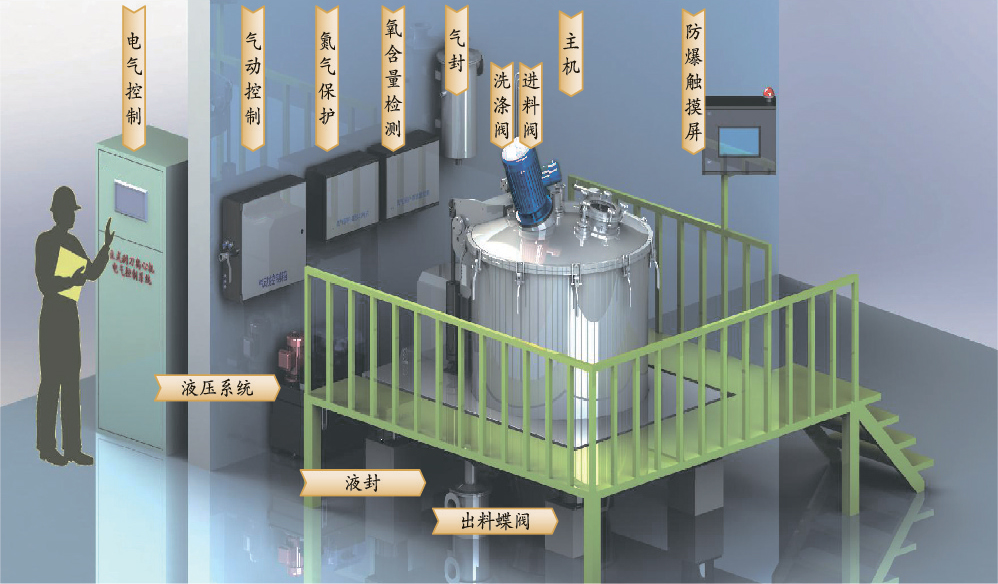 Automatic control system controls centrifuge mainframe, hydraulic system, pneumatic system, N2 protection system,and pump, valve, material conveying system related with centrifuge, etc.