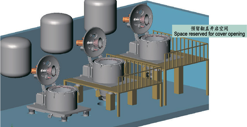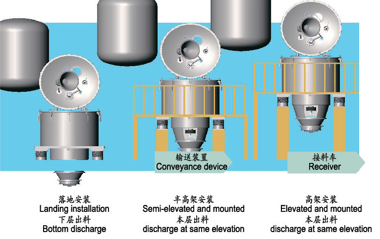 The mixture of solid and liquid is distributed uniformly&quickly in centrifuge drum by feeding tube and distributing evenly through the distributing disk. acting on the centrifugal position. Liquid-solid mixed fluid intercept the solid phase through the fitter to filter out the liquid phase. Centrifuge continues to feed until full. Then stop. Solid cake is rinsed and purified when the process requires. And the rinsing liquid is filtered out meanwhile. Centrifuge further filter until the separation requirements are met.
