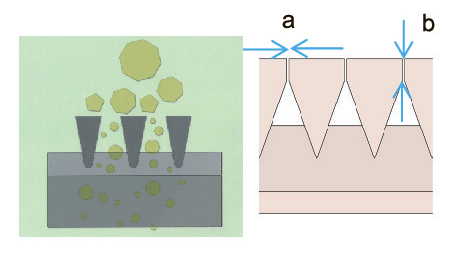 u Wedge-shaped net made of trapezoidal wire containing a straight-line "b", resulting in a longer wear-out-failure period